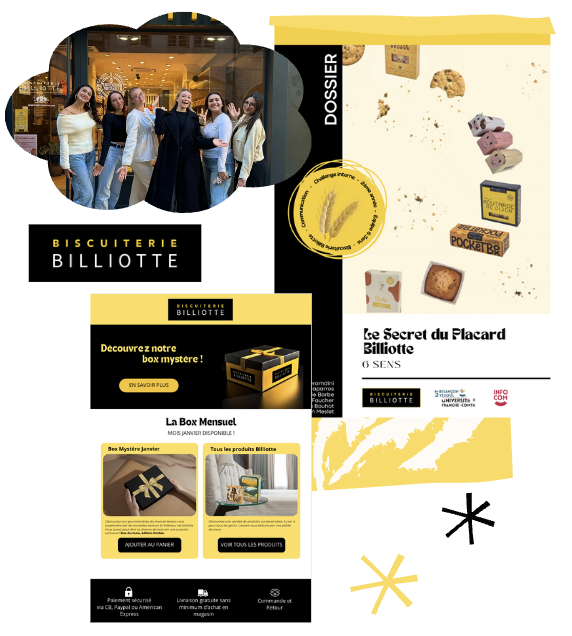 Dans le cadre de ce challenge, organisé par l’IUT Besançon-Vesoul nous avons collaboré avec la Biscuiterie Billiotte pour développer sa visibilité et attirer davantage de clients en magasin et sur son site internet.